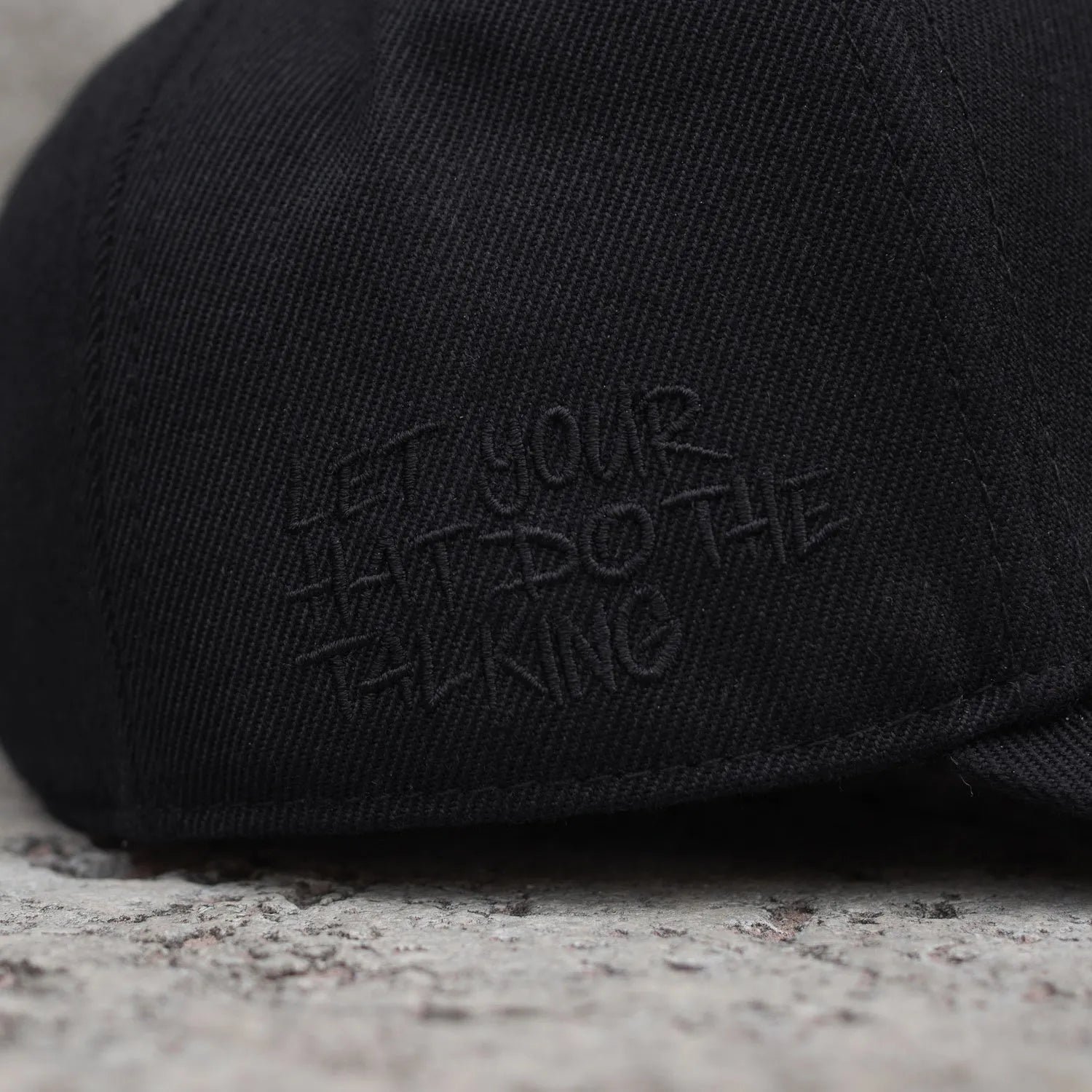 - Lifestyle Message: Embroidered in black on the right side, the phrase “Let your hat do the talking” brings a personal and playful touch.