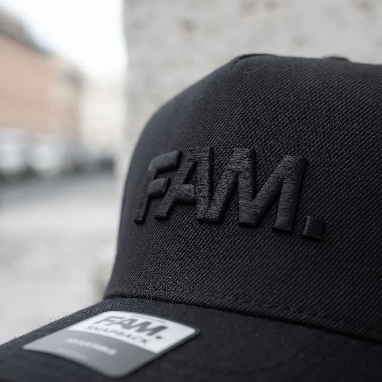 - Iconic Front Logo: Featuring the bold FAM. logo in clean black raised embroidery—an instant statement of simplicity and confidence.