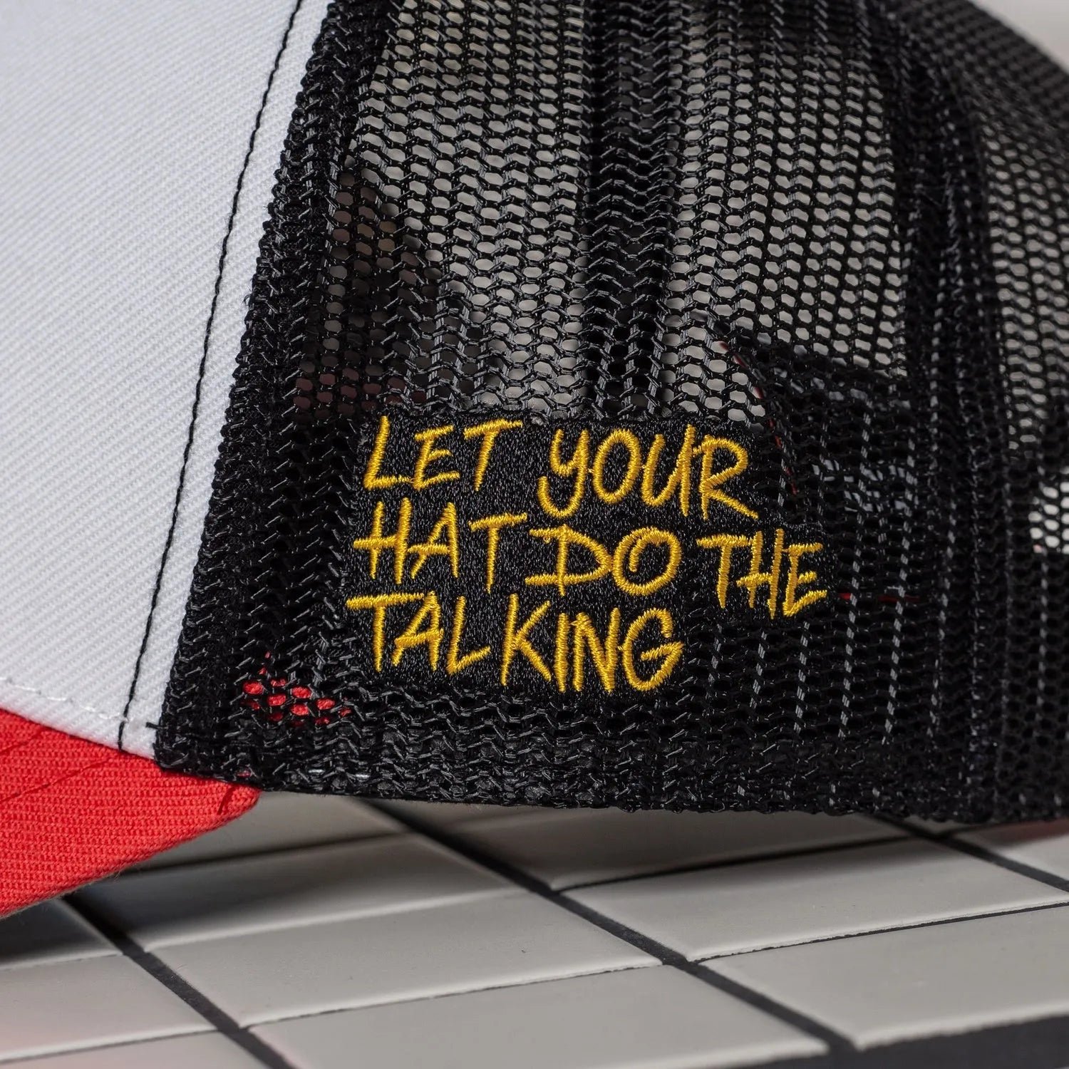 – Signature Details: The phrase “Let your hat do the talking” is subtly placed on the left side, adding a personal touch of self-expression.