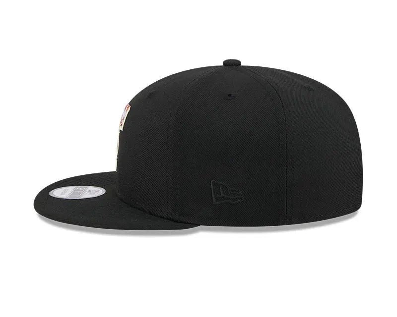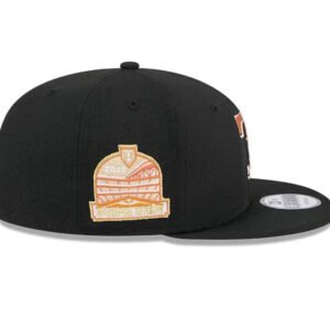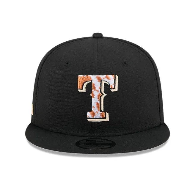This 9Fifty Snapback celebrates the Texas Rangers with a striking embroidered Rangers logo at the front, accompanied by the iconic New Era flag on the left side. Marking a significant moment in the team’s history, it showcases the Inaugural Season 2020 side patch. Crafted in sleek black polyester with a structured crown, it offers durability and style. Featuring a flat visor for a classic look and an adjustable Snapback closure at the rear for a customizable fit, it’s the perfect accessory for any Rangers fan.
