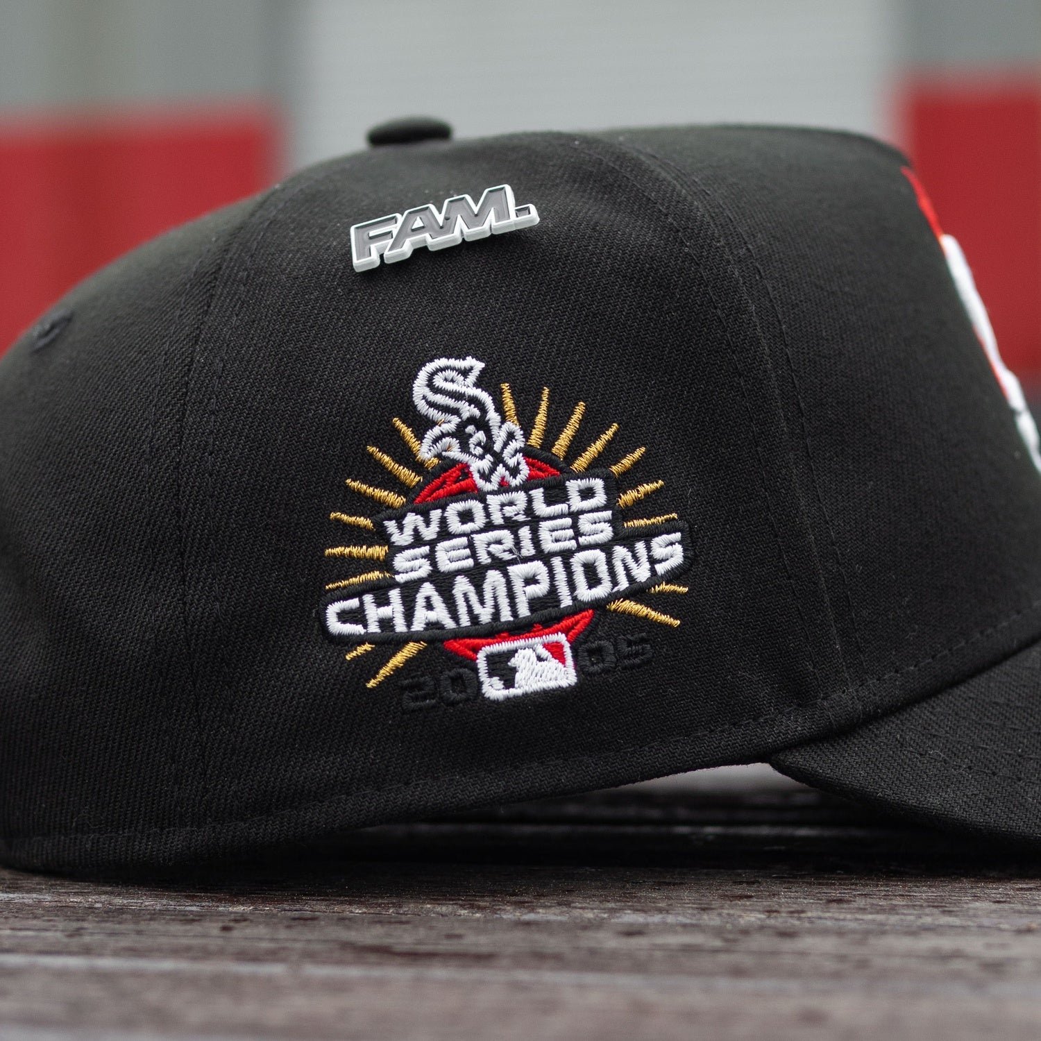- Embroidered Chicago White Sox logo with flames at front