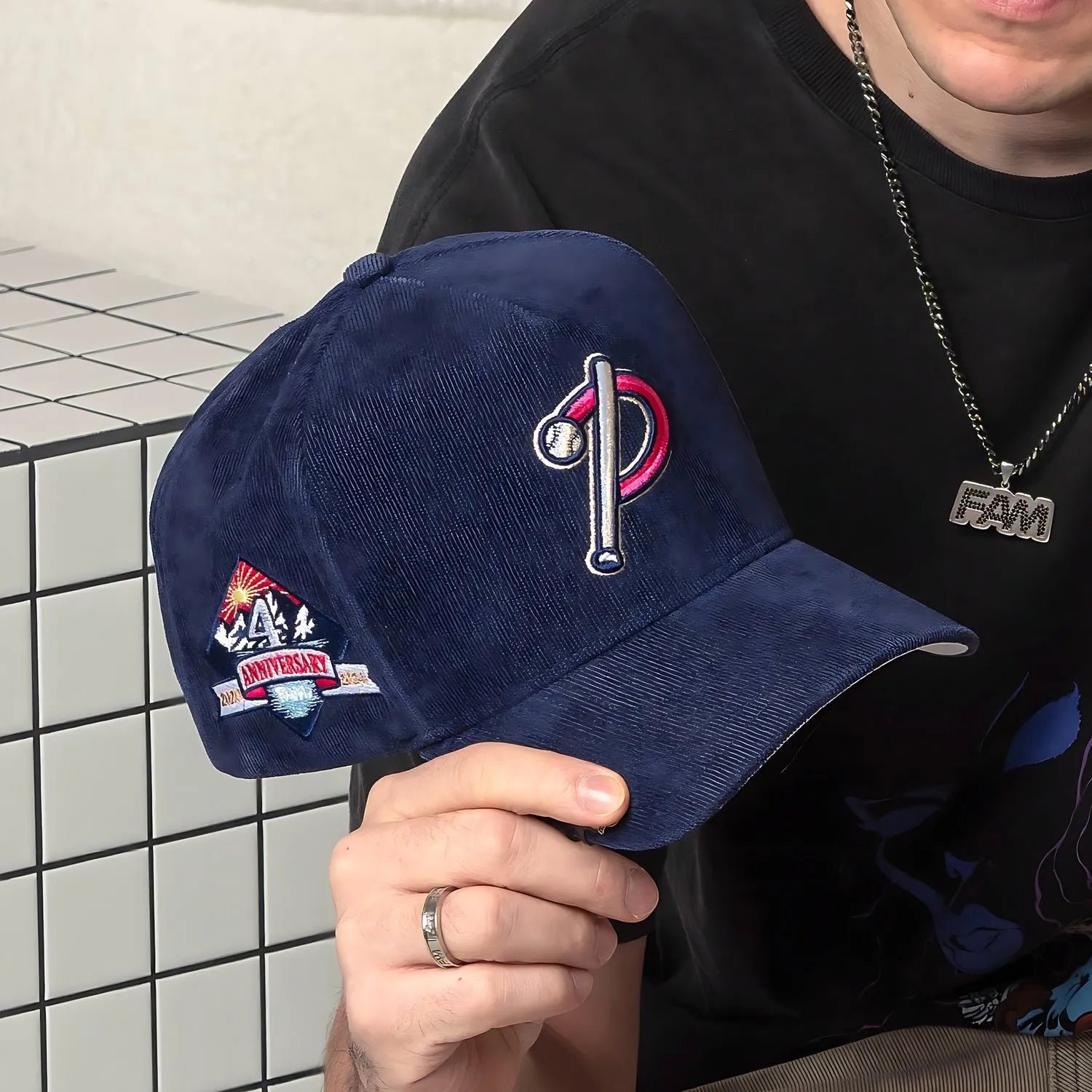 FAM.CAP SNAPBACK “P” CAP 4TH ANNIVERSARY NAVY CORDUROY / GREY UV